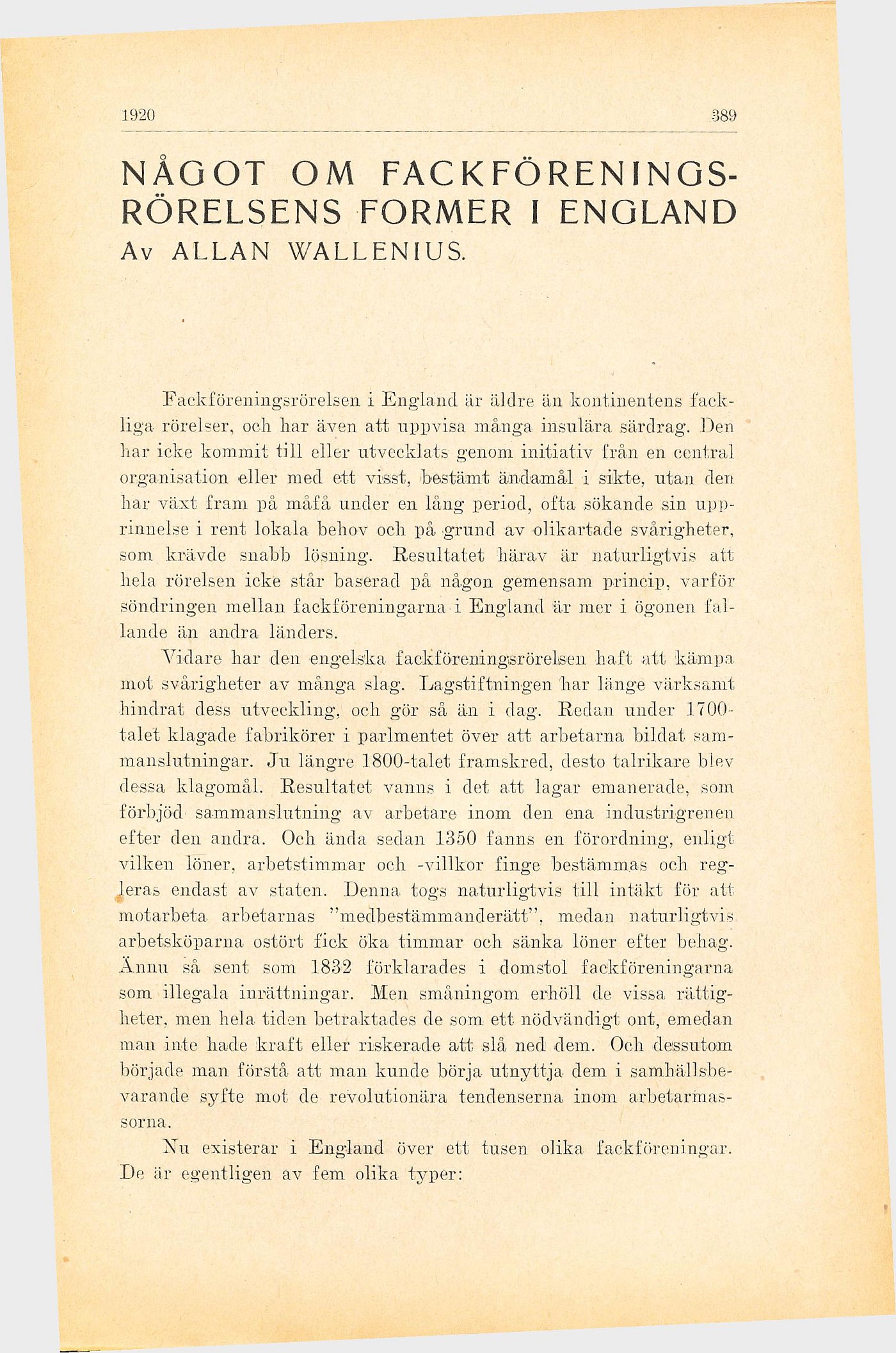 FACKFÖRENINGSRÖRELSENS FORMER I ENGLAND