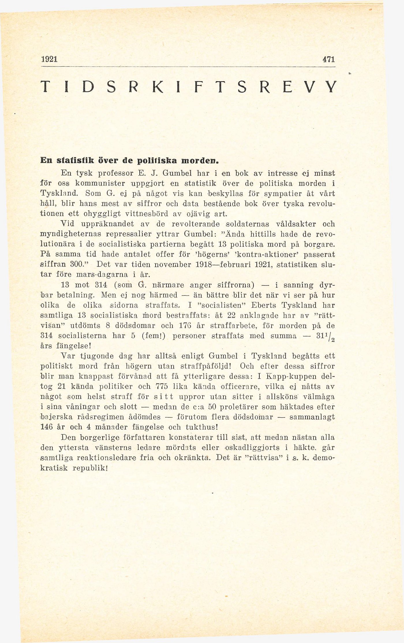 En tysk professor E. J. Gumbel har i en bok av intresse ej minst