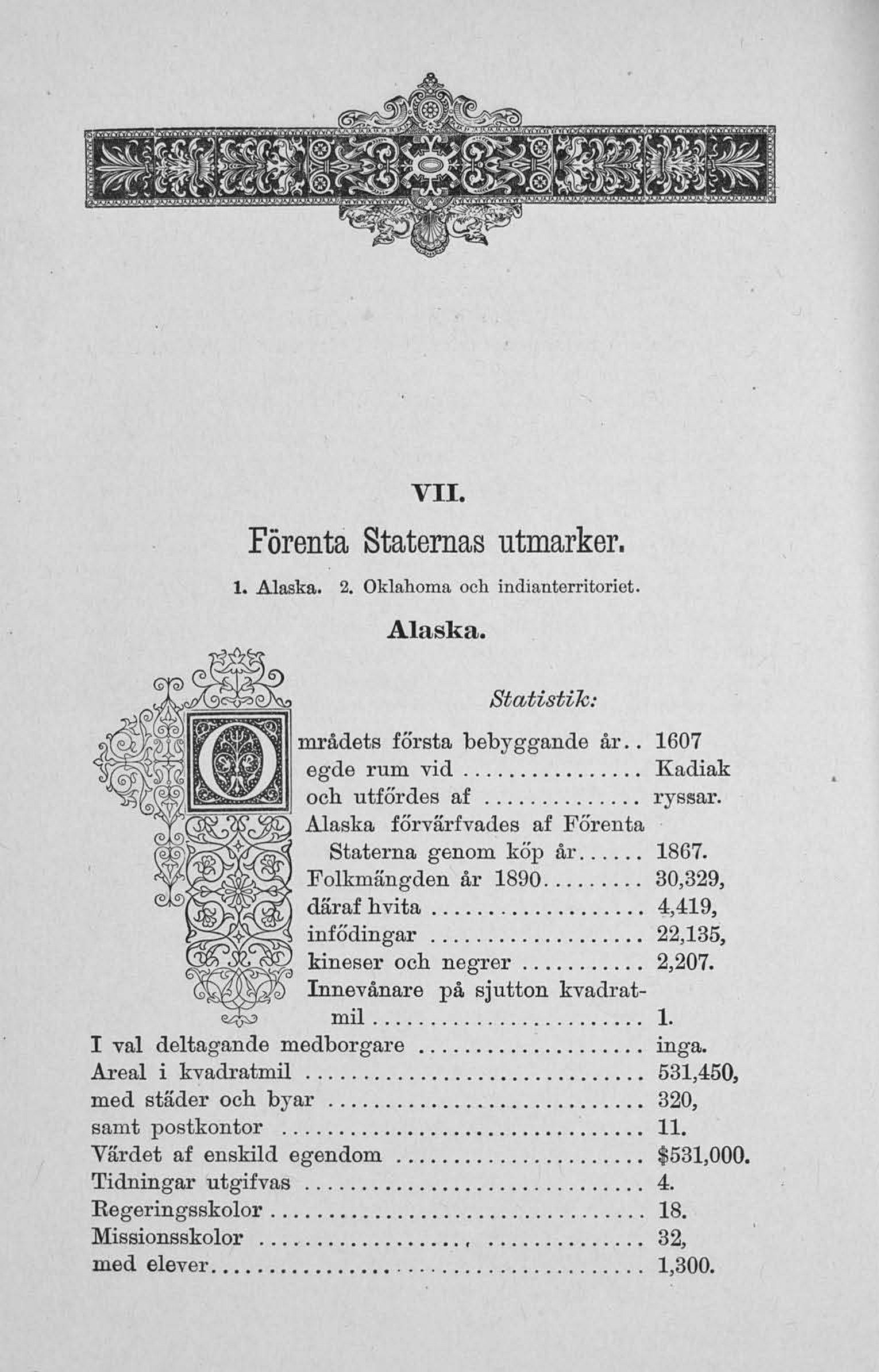 1. Alaska. 2. Oklahoma och indianterritoriet.