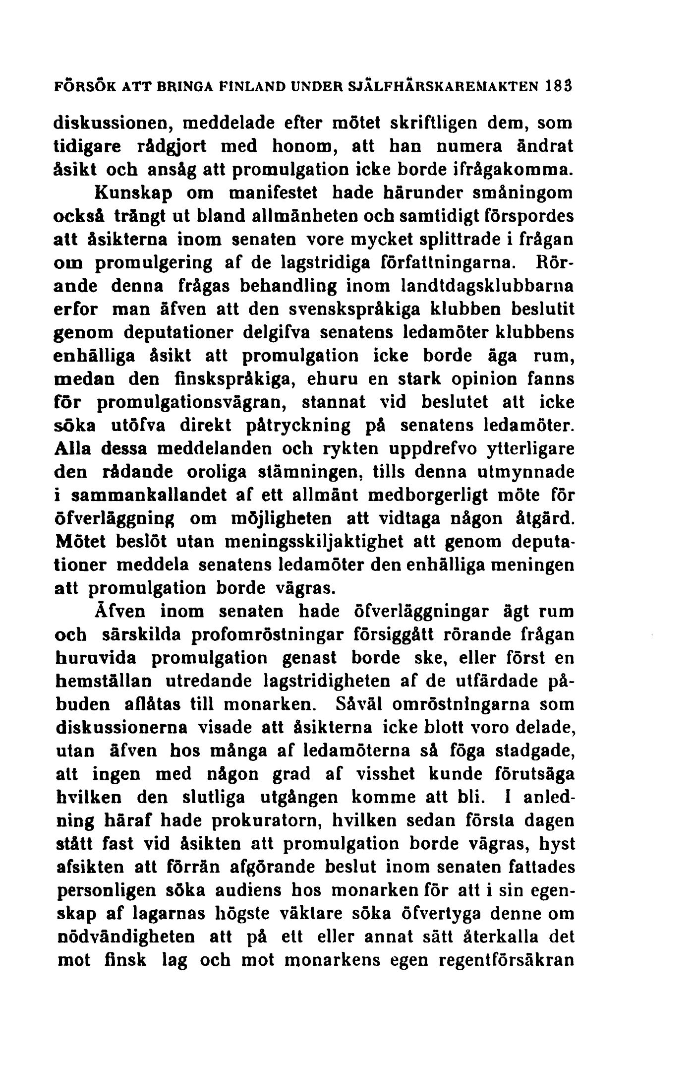 medan den finskspråkiga, ehuru en stark opinion fanns