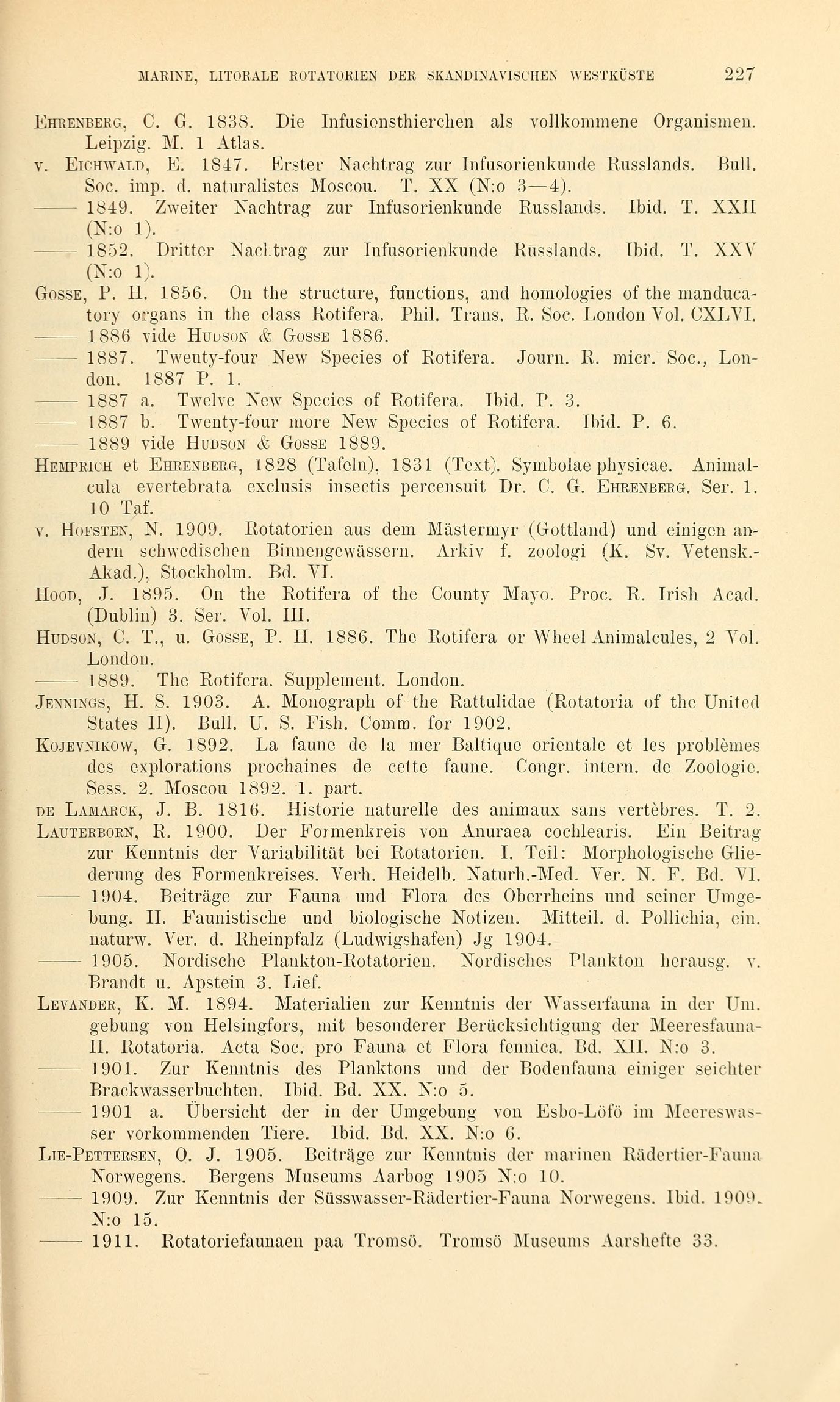 1911. Rotatoriefaunaen paa Tromsö. Tromsö Museums Aarshefte 33.