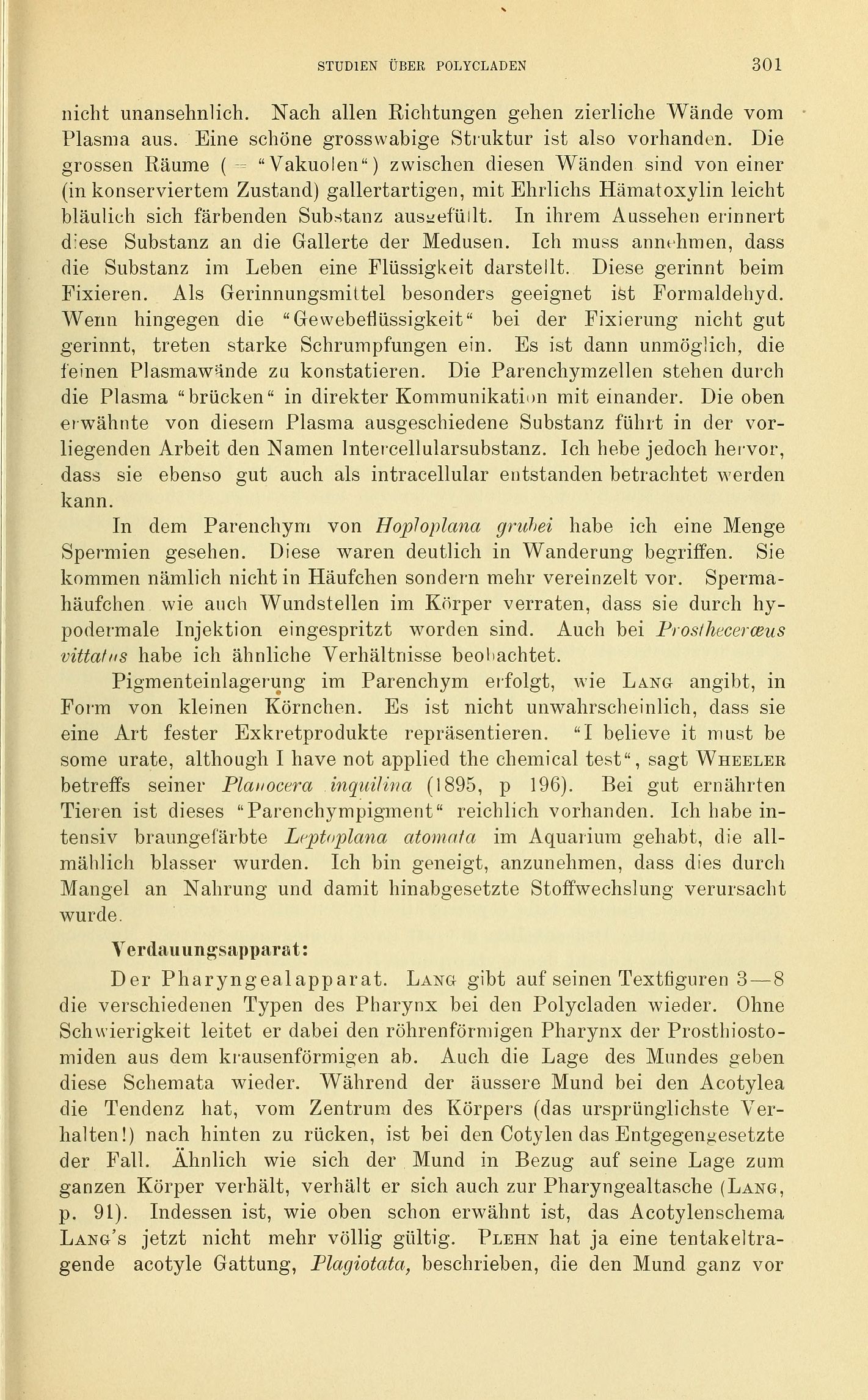 In dem Parenchym von Hoploplana gruhei habe ich eine Menge